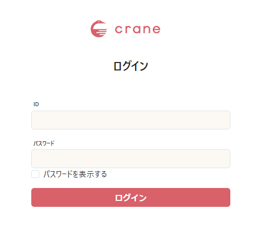 ・craneのログイン用E-MAIL/パスワードは別途メールでアカウント開設の案内をお送りします。